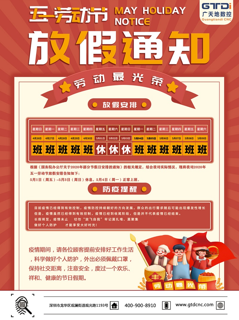 2020年亚星|会员数控公司五一劳动节放假时间安排