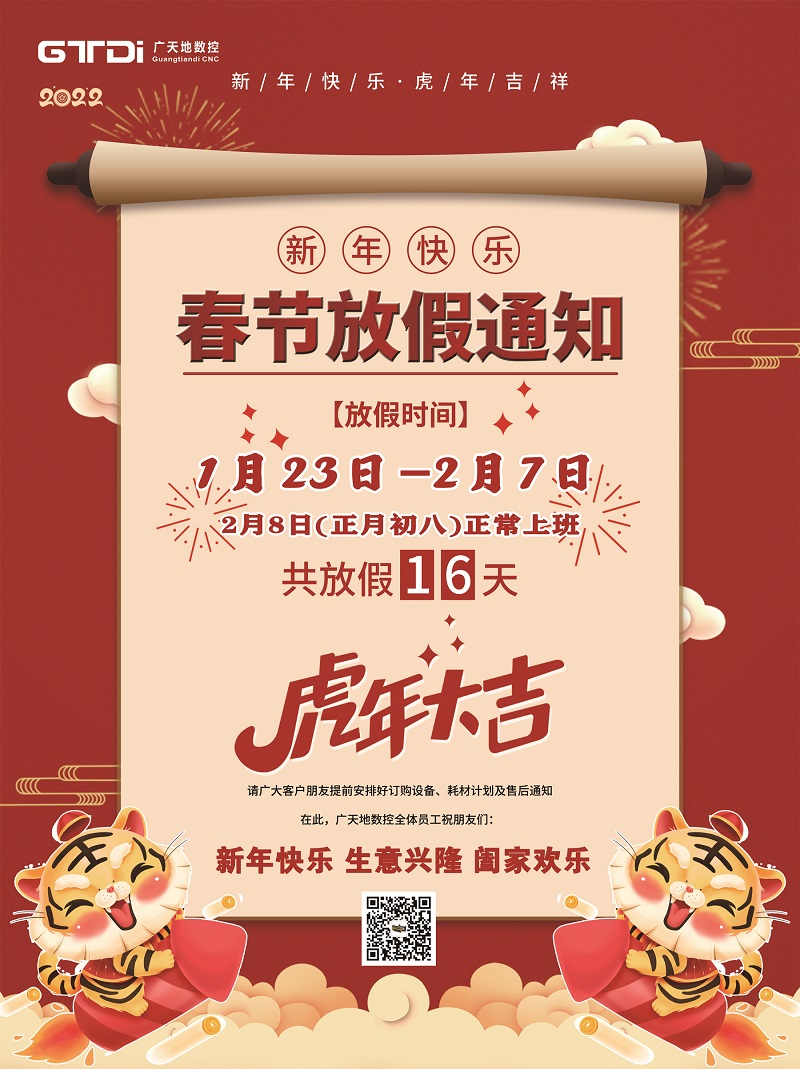 2022年春节将至,首先感谢您在2021年里的鼎力支持和愉快合作,亚星|会员数控全体同仁在此给您拜个早年。在新年的一年里,亚星|会员将更加努力,为您提供更优质的服务。按照国家春节放假规定结合我司的具体情况,春节放假时间安排如下: