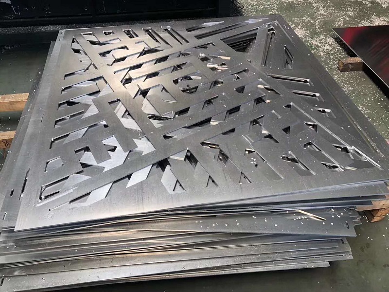 铝单板加工程序:开料(冲孔,雕刻),开角,画线,折弯,滚弧,焊接,打磨,抛光,组装,前处理,喷涂,包装。用于隔断或幕墙造型的雕花铝单板一般使用2.0mm/.5mm/3.0mm及以上的厚度的铝板为原材料,这样就能很好的保证雕花板板面的平整度。对于装饰类的雕花幕墙及吊顶,可选用较薄的材料如1.0mm / 1.2mm/ 1.5mm 的材料。常规铝单板雕刻机的雕刻刀较小为8mm,故在设计图案时图案间隙较小一般不得小于10mm。