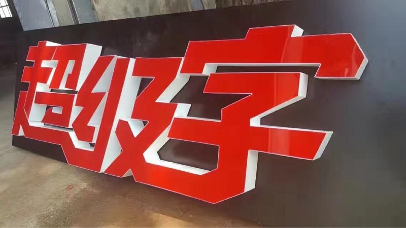 超级字,又叫液态亚克力发光字,它的主要制作特点是,采用轻质的铝字围边字壳,表面倒灌液态亚克力胶,常温固化而成,液态亚克力胶固化后与铝字壳紧紧粘接在一起,从整体外观上表现出无缝一体化,棱角分明,立体感十分强。